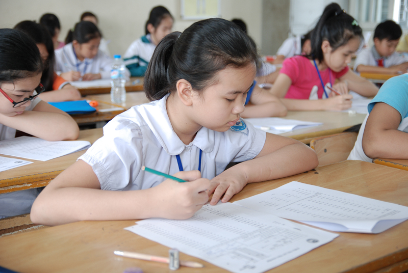 Trong tiết học với giáo viên nước ngoài, các con sẽ được tập trung cải thiện kỹ năng Nghe – Nói. Các con sẽ được học theo cặp, theo nhóm để đảm bảo bạn nào cũng được nói và phải nói, thêm vào đó, việc học thông qua các trò chơi sẽ khiến con hứng thú. Có lẽ đó là lý do mà học sinh trường Tây Sơn cảm thấy khá tự tin về phần thi Nghe – Nói. Các con đánh giá đề thi phù hợp và đều dễ dàng trả lời hết các câu hỏi.”